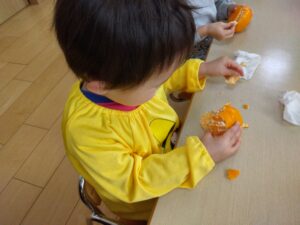 冬の果物みかんの食育   (企業主導型保育園まるめろっじ)